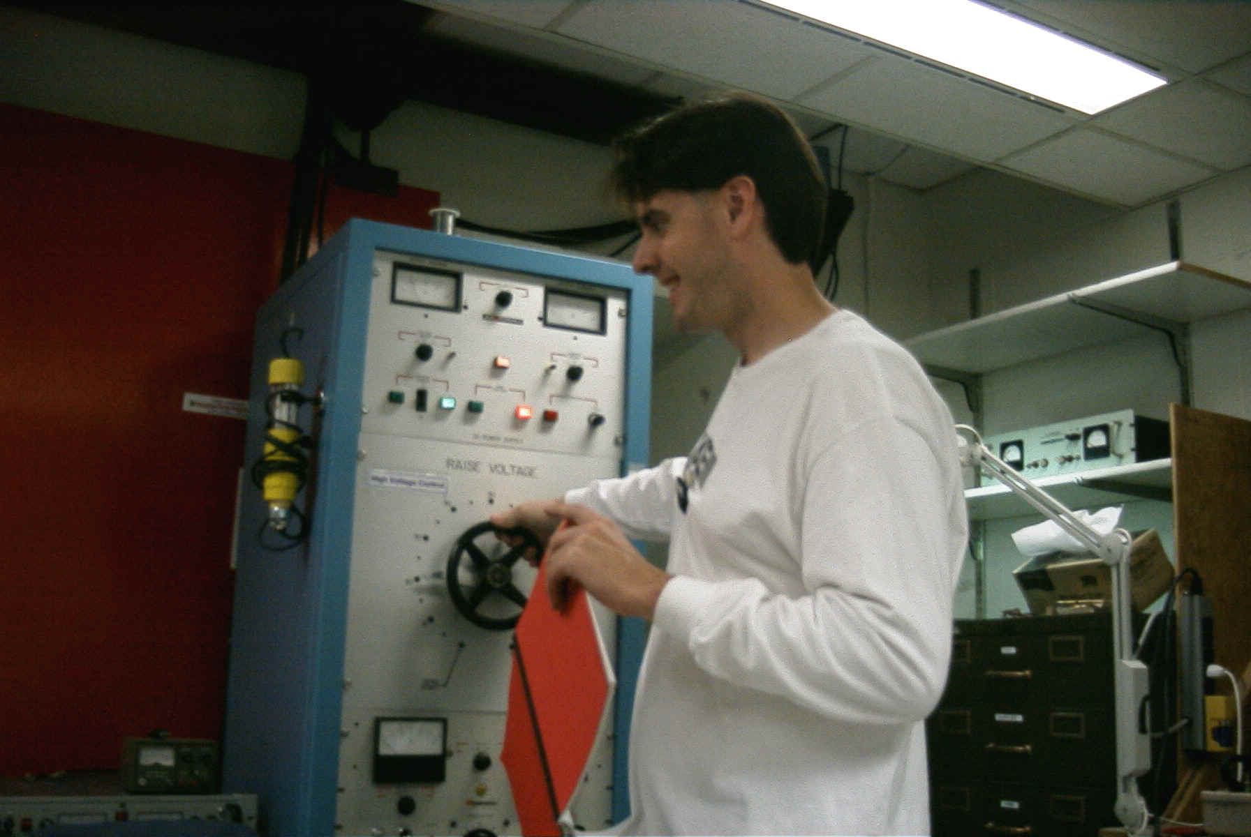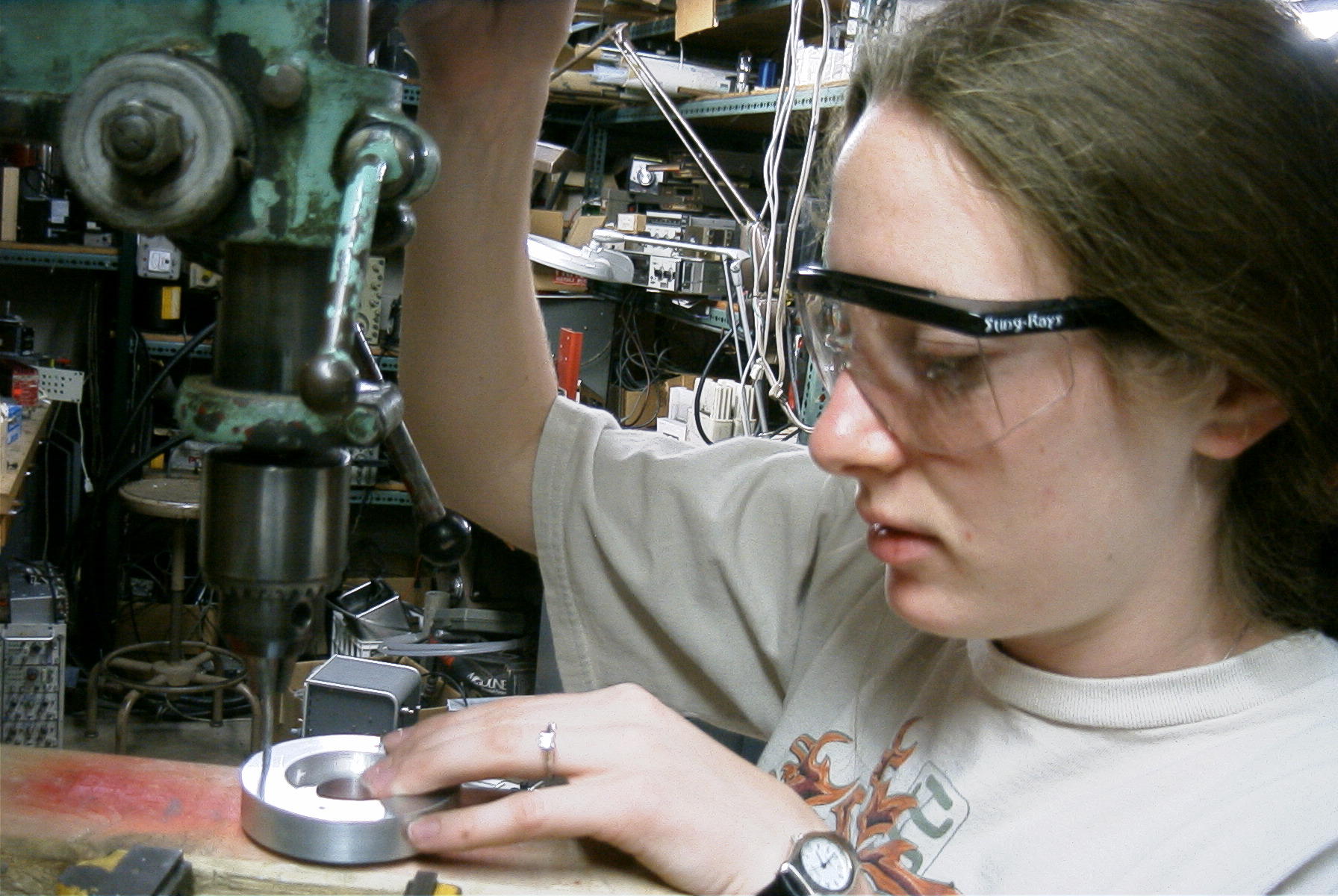 | Ross troubleshooting neutron spectrometer | Tracy making a part for a proton detector |